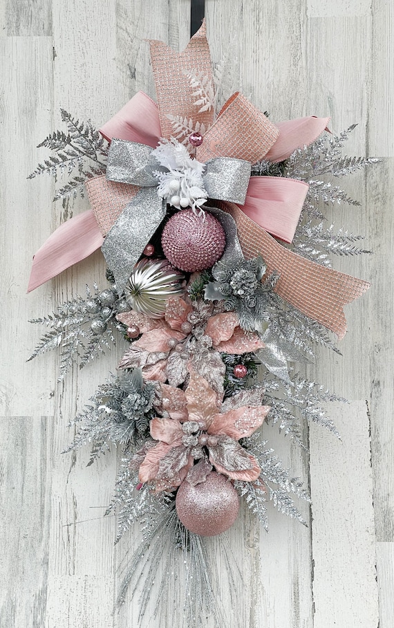Blush pink poinsettia christmas decorations clearance, Christmas Swag, Pink Christmas Swag, Christmas Swag for Front Door, Pink Christmas Decor, Pink Poinsettia, Christmas Decor, Christmas Wreath - Etsy UK clearance