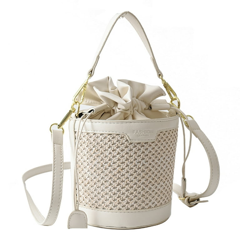 Bucket bag for work clearance, Yucurem Summer Straw Bucket Bag Drawstring Fashion Women Shoulder Bag for Work (Beige) - Walmart.com clearance