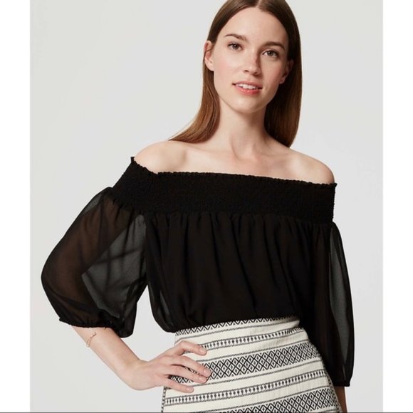 - Black chiffon off the shoulder top outlet