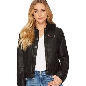 - Levi's black leather jacket womens