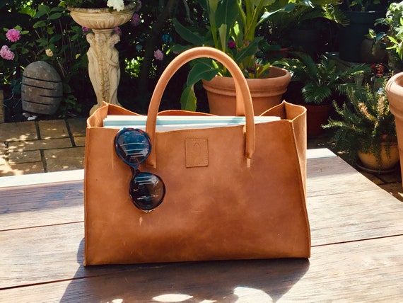 Rigid leather tote clearance