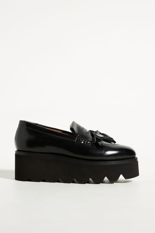 Kitty loafers clearance, Black Kitty polished leather platform clearance