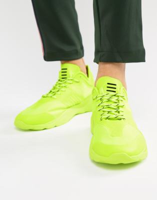 Fluorescent yellow trainers clearance, boohooMAN chunky trainers in neon clearance