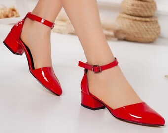 Red small heel shoes clearance