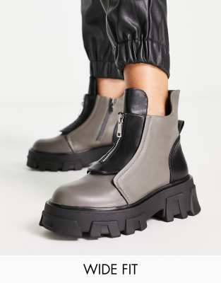 Grey wide fit ankle boots clearance