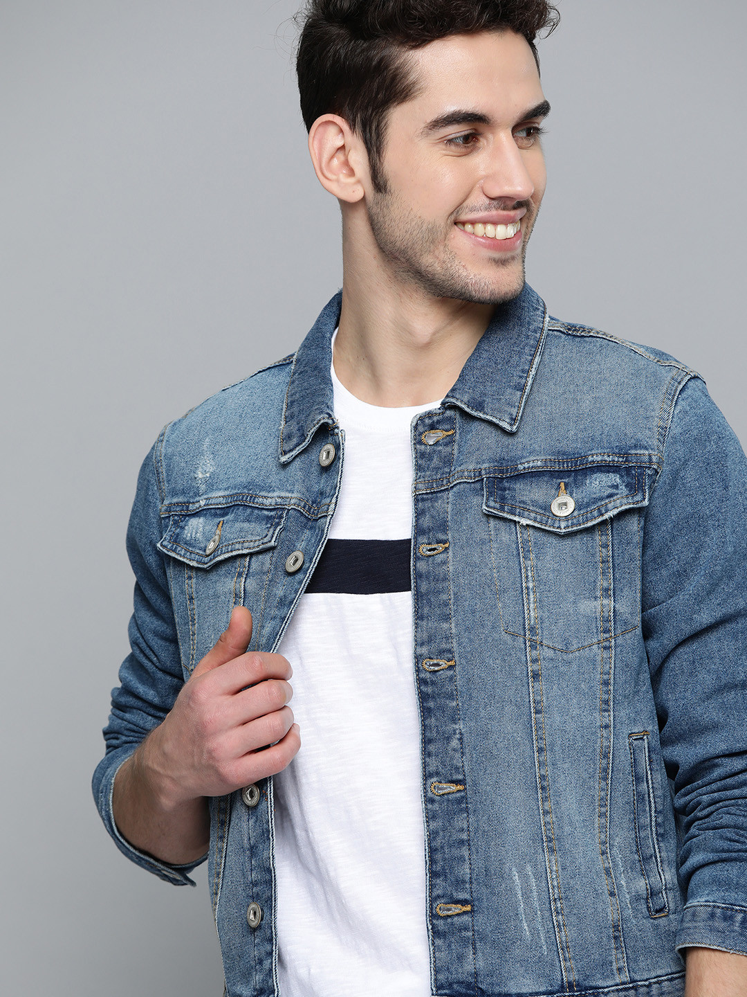 Mast & harbour full sleeve solid men jacket clearance, Buy Mast u0026 Harbour Men Blue Solid Denim Jacket - Jackets for Men 12884586 | Myntra clearance