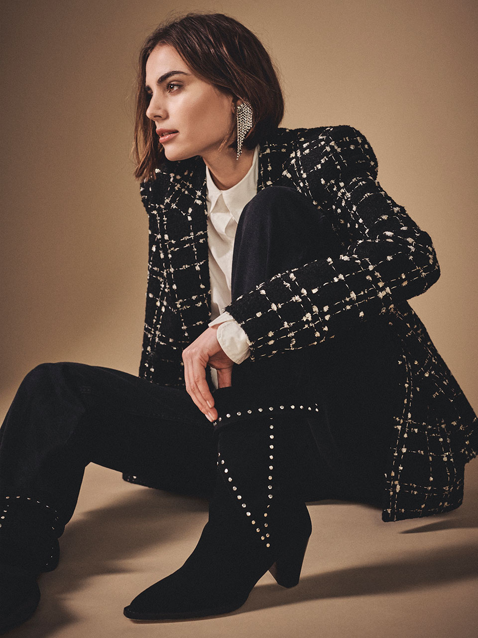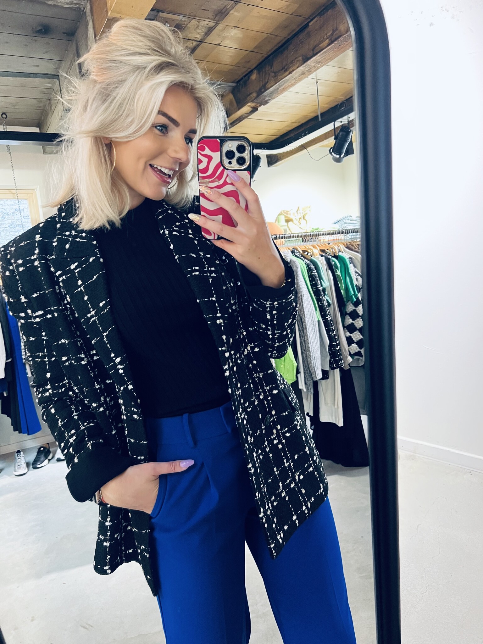 - Black and white boucle blazer