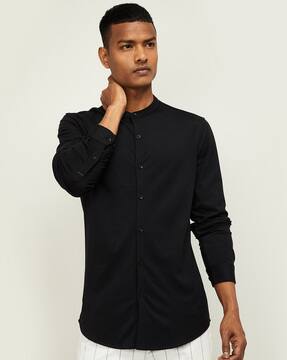 Designer collarless shirt clearance