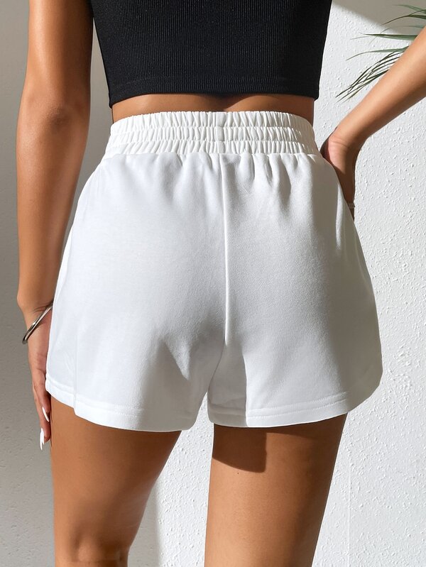Shein nike shorts clearance, Shein High Waist Straight Leg Shorts, Petite M White Fabric Plain Polyester 18-24Y Regular Fit Casual clearance