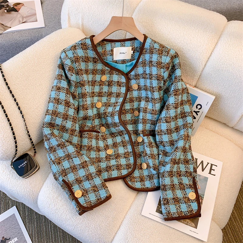 4xl tweed jacket clearance, S-4XL Small Fragrant Pink Plaid Tweed Outerwear Chic Vintage Autumn Women Double-Breasted Pockets Woolen Weave Short Jacket Coat - AliExpress clearance