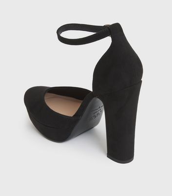 Platform court shoes with block heel clearance, Black Suedette Platform Block Heel clearance