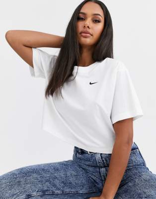 White cropped nike shirt clearance, Nike white mini swoosh crop t-shirt | ASOS clearance
