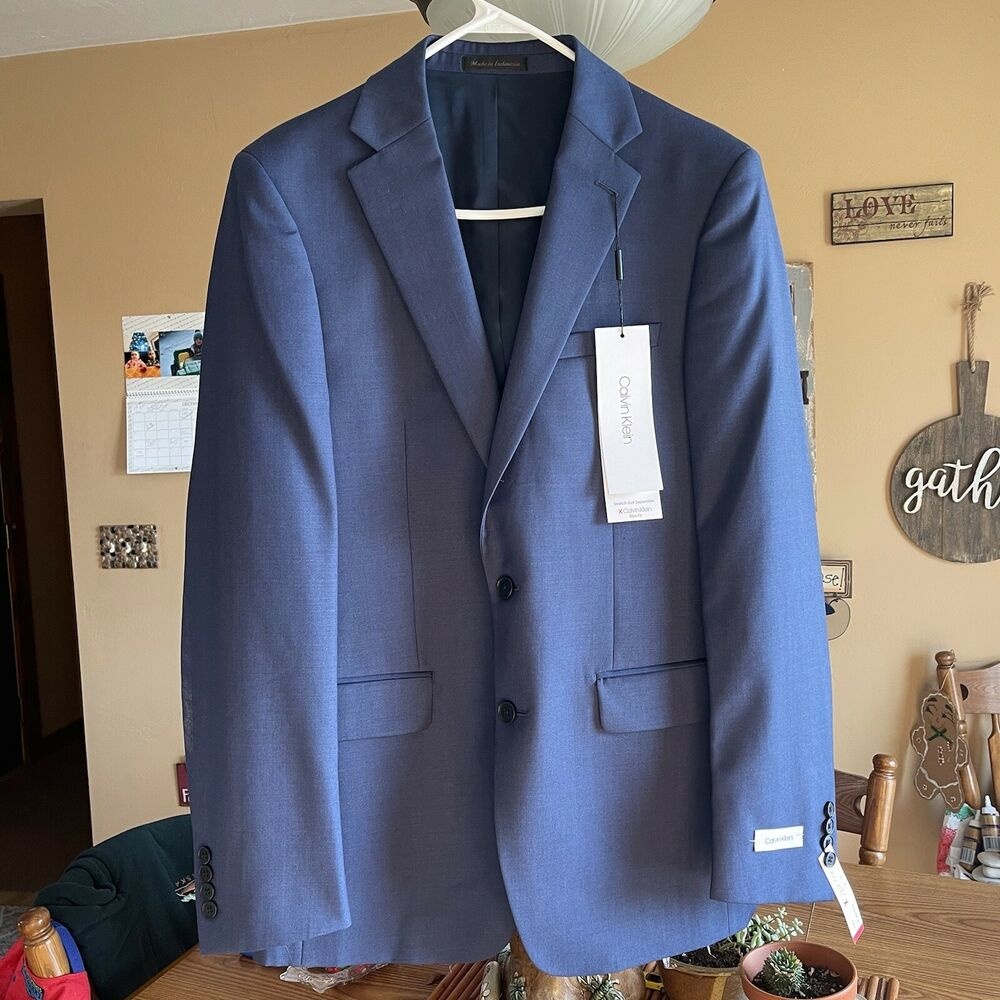 Calvin klein infinite stretch solid slim fit jacket clearance, Calvin Klein Men's Slim Fit Button Notch End Bi-Stretch Infinite Jacket, Iron gate, Medium R at Amazon Men's Clothing store clearance