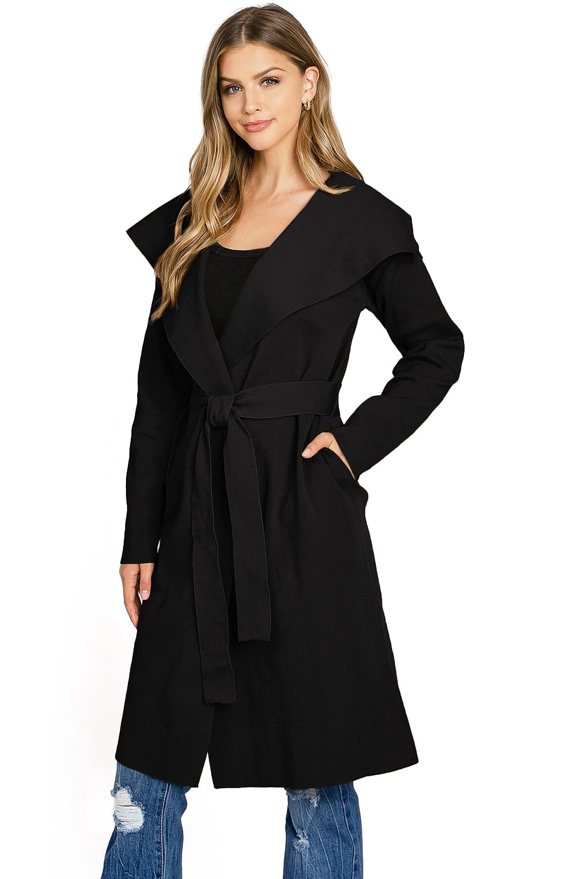 Black trench cardigan clearance