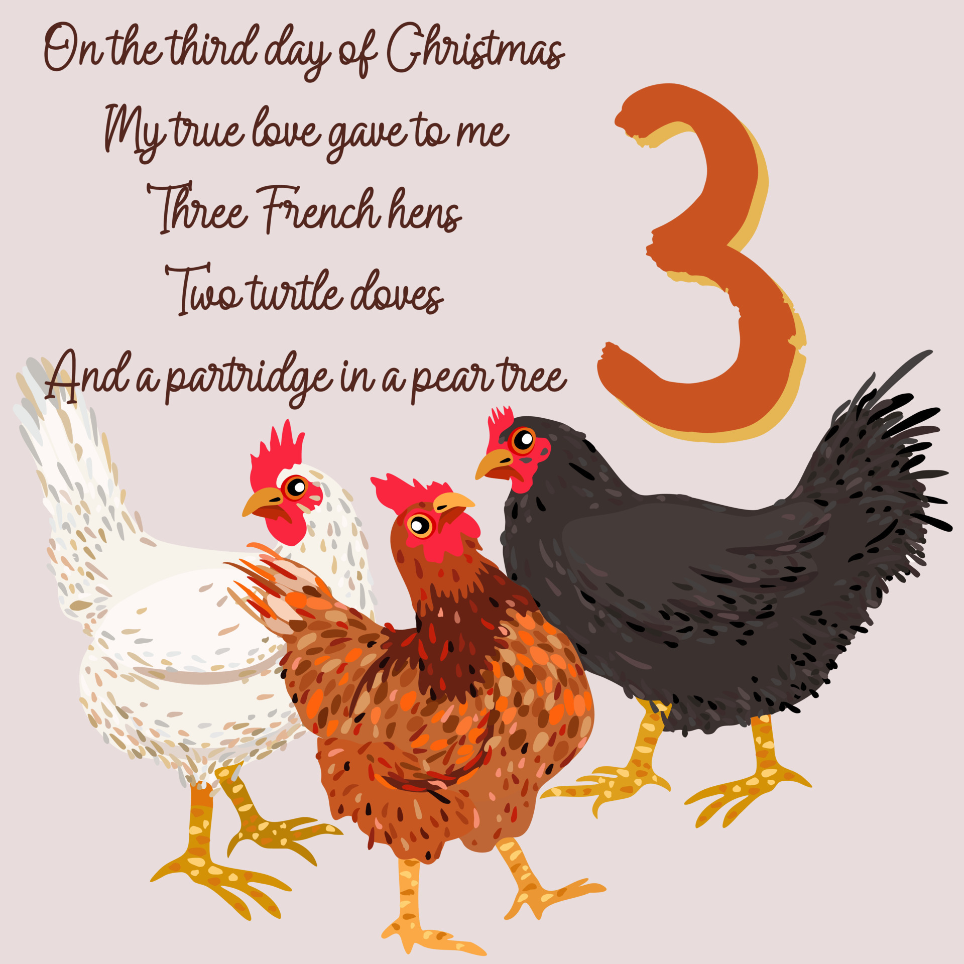 3 french hens 12 days of christmas clearance, The twelve days of Christmas. Third day. Three french hens. 14904724 Vector Art at Vecteezy clearance