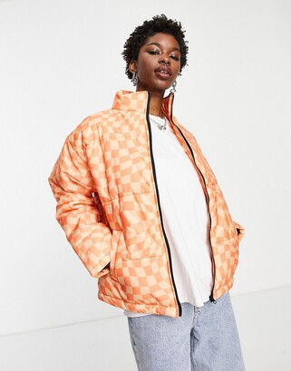 Daisy street puffer jacket clearance, Daisy Street relaxed puffer jacket in orange wavy print - ShopStyle clearance