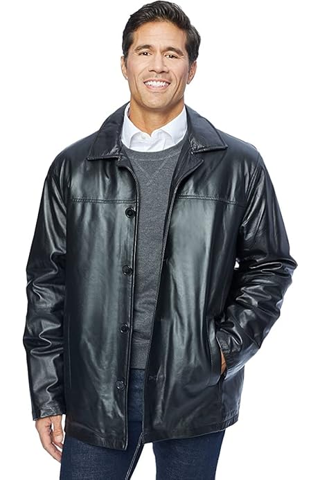 Lambskin car coat clearance, Excelled Men's Big and Tall Four-Button Lambskin Leather Car Coat, Black, XLT at Amazon Men's Clothing store clearance