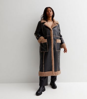 Blue vanilla teddy coat clearance, Blue Vanilla Curves Black Teddy Trim Long Coat | New Look clearance