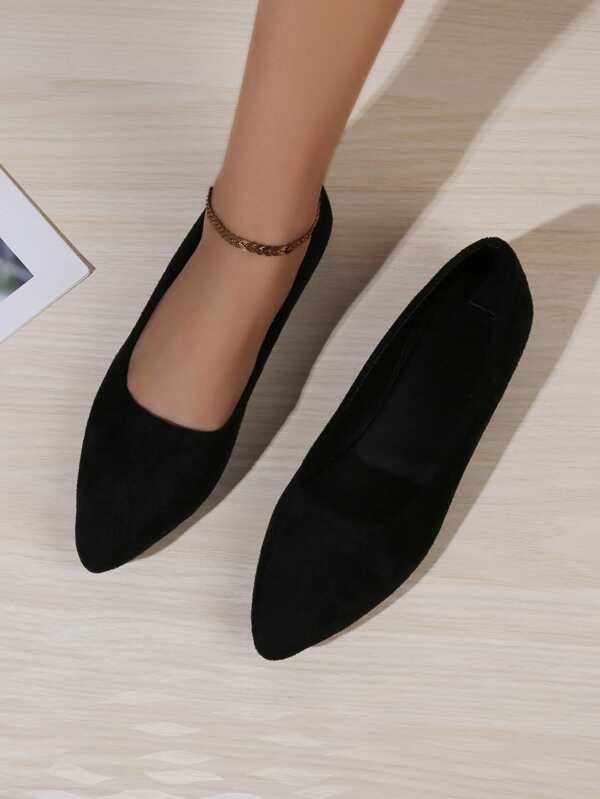 Shein pointed flats clearance, Minimalist Point Toe Ballet Flats, CN36 Black Plain Elegant Suedette clearance