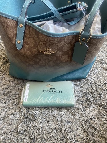 Coach tote teal clearance