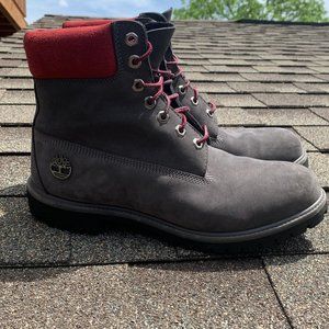 Grey and red timberland boots clearance