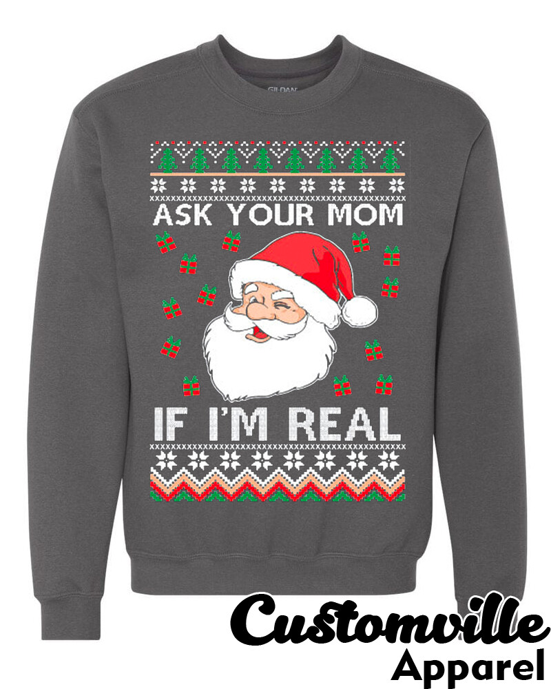 Ugly christmas sweater ask your mom clearance, ? Ask Your Mom if I'm Real Ugly Christmas Sweater. Santa Claus Wink sweatshirt | eBay clearance