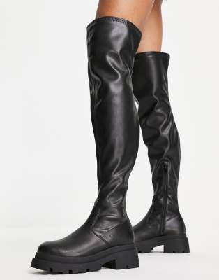 Chunky flat over the knee boots clearance, Boohoo Chunky Stretch Over The Knee Boots - Black - Size 4 clearance