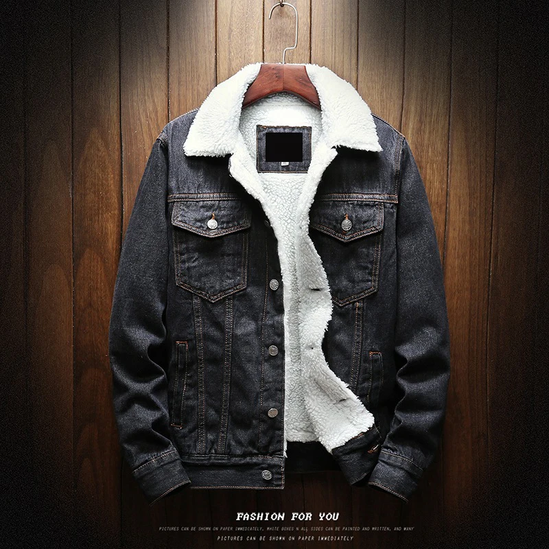 Wool jean jacket clearance, Plush Long-sleeved Jeans Jacket Men's Winter Denim Cotton Jacket Lamb Wool Korean Fashion Style Thick Outware Coat For Young Men - AliExpress clearance