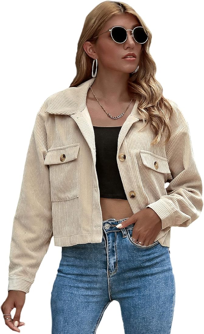 Cream corduroy jacket womens clearance, Buy QUECY® Women's Button Up Pocket Front Crop Corduroy Jacket Outerwear at Amazon.in clearance