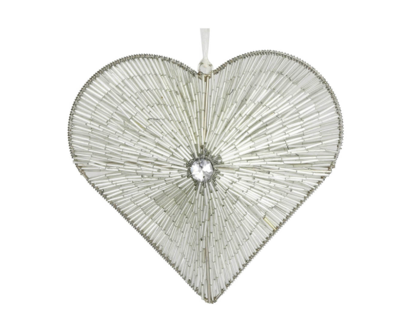 Silver heart christmas tree decorations clearance
