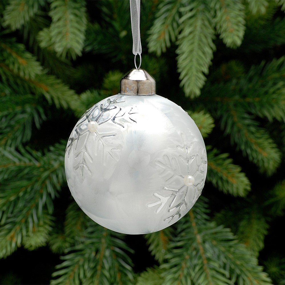 - White frosted glass christmas ornaments shop