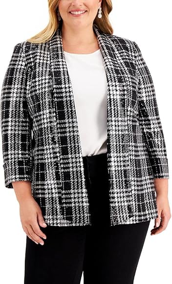 Topper blazer clearance, Kasper Women's Jewel Neck 2 Pocket Topper Blazer, Fire Red Multi, 16W US : Amazon.co.uk: Fashion clearance