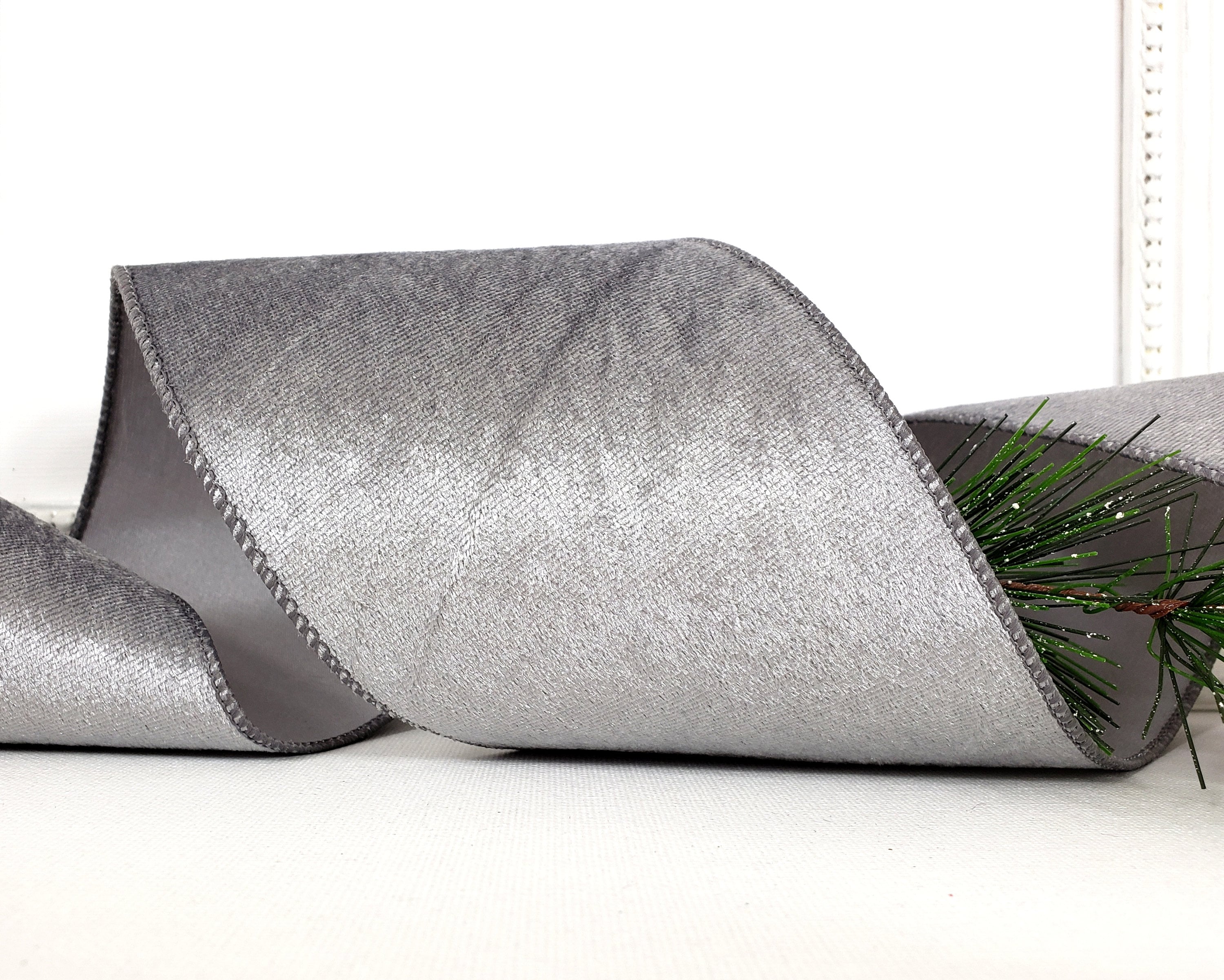 Grey velvet christmas tree ribbon clearance, Christmas Wired Ribbon 4 Silver Grey Velvet Satin Back - Etsy UK clearance