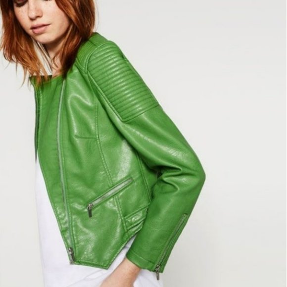 - Zara leather green jacket free shipping