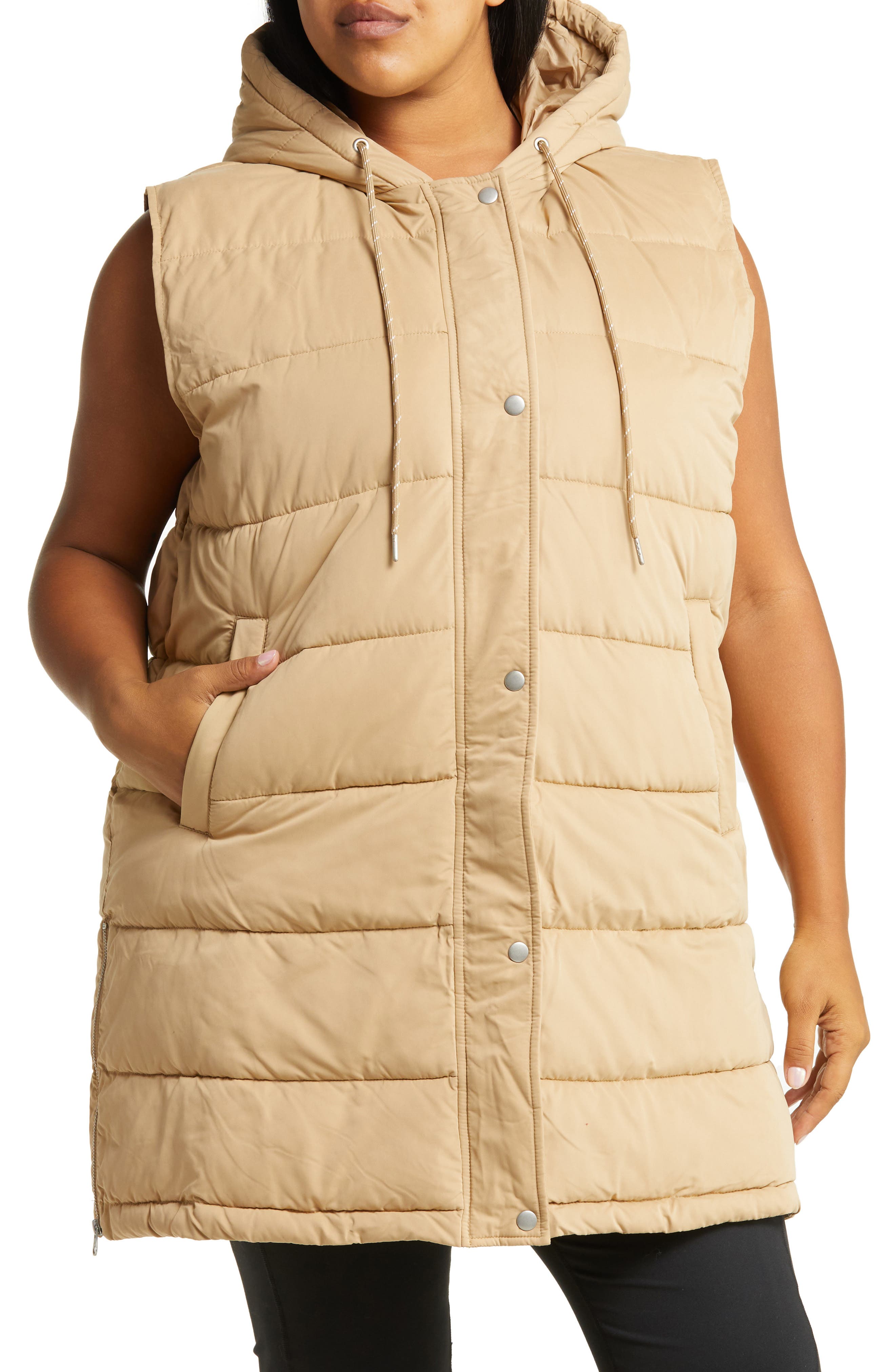 Long tan puffer vest clearance