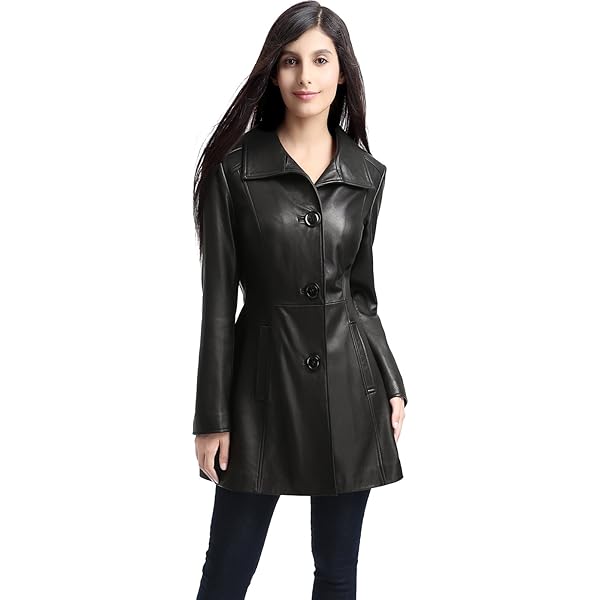 Long leather jacket petite clearance, Rita Women's 100 % Real Brown Leather Classic Coat clearance