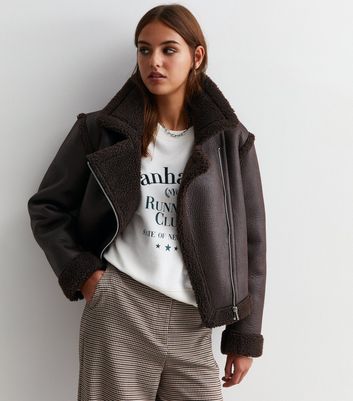 - Brown leather borg jacket shop
