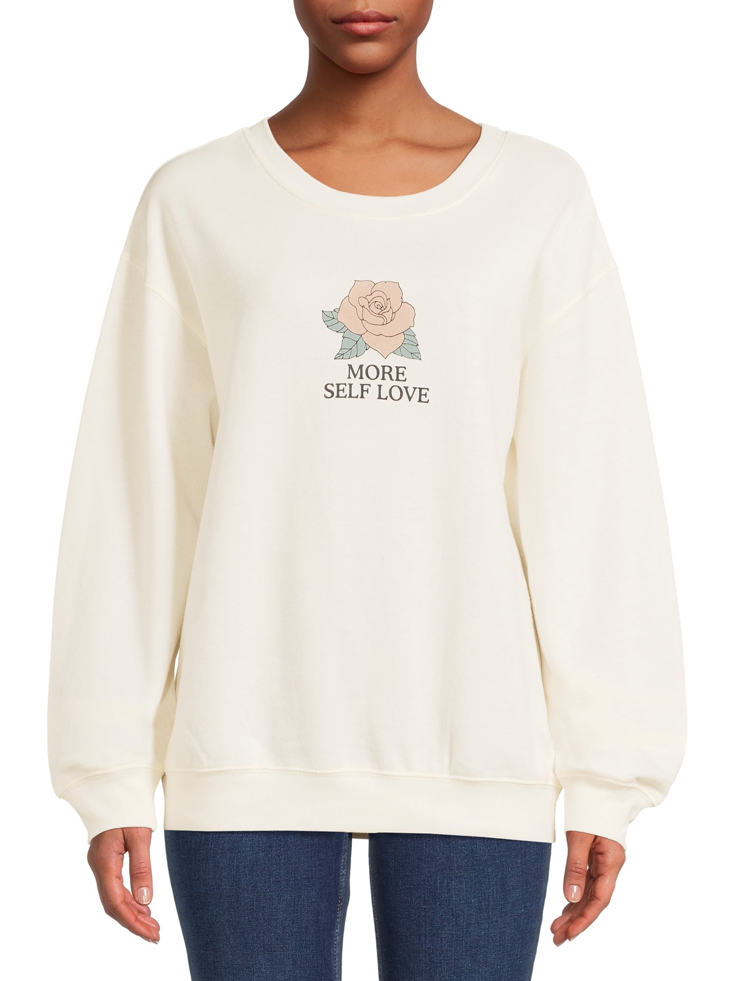 Long sleeve graphic sweatshirt clearance, Licensed Graphics More Self Love Juniors Long Sleeve Graphic Sweatshirt, Women's, Size: Large, White clearance