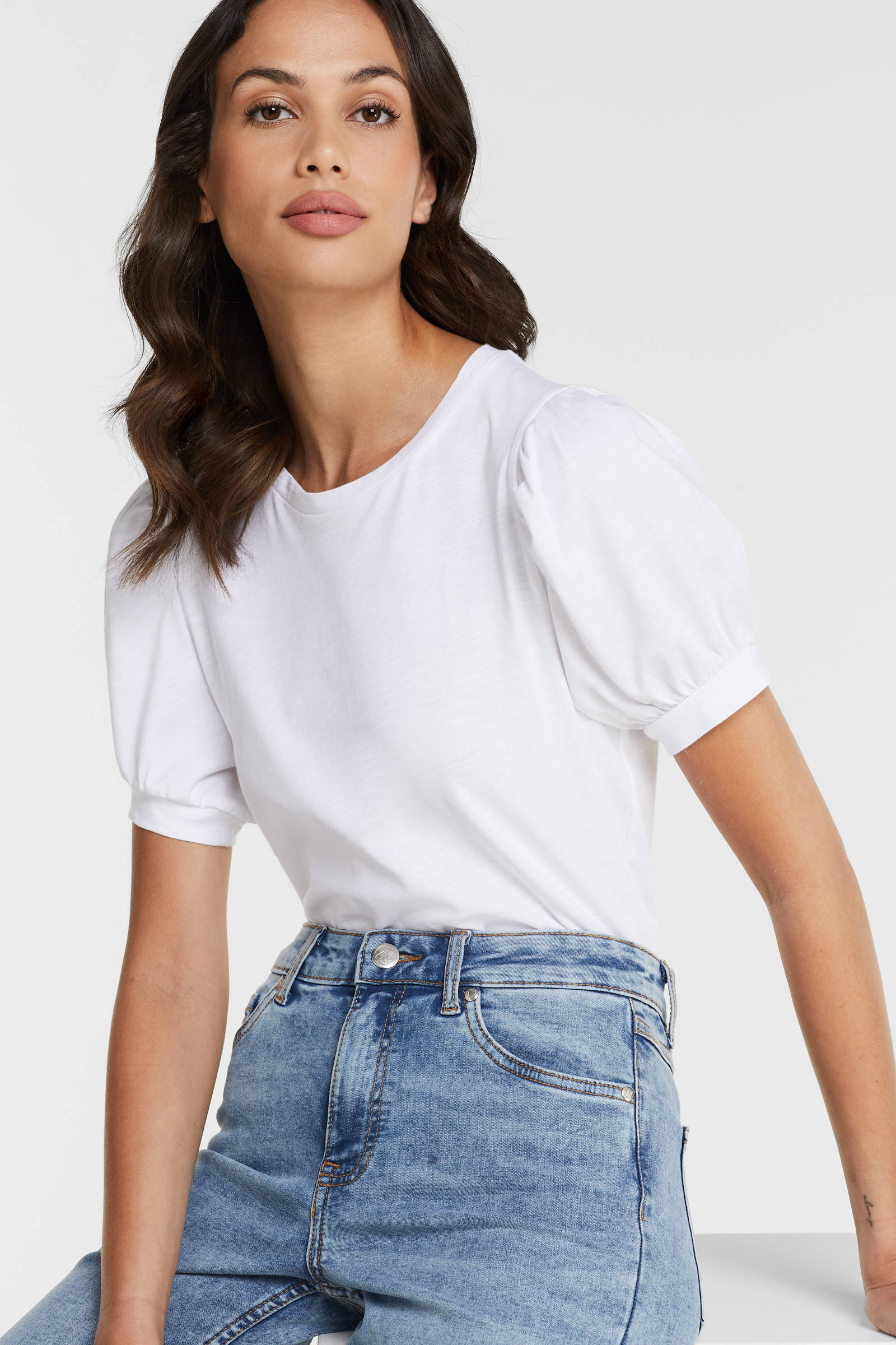 Wit shirt pofmouw clearance