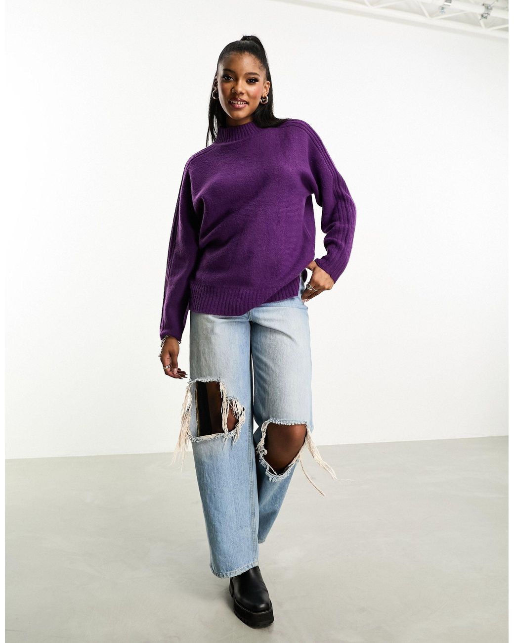 Oversized jumper clearance, Faye High Neck Oversized Long Sleeve Knitted Jumper in Brown | ikrush clearance