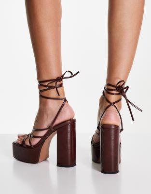 Brown heels asos clearance, ASOS DESIGN Nanon strappy platform clearance