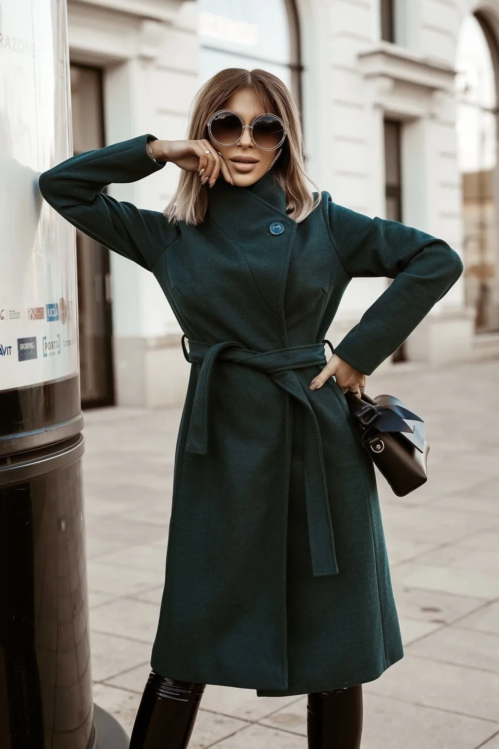 Colorful polo coat clearance, Women Coat Fall Winter Fashion Solid Color Polo Collar Bandage en Coat Women's Coat - AliExpress clearance