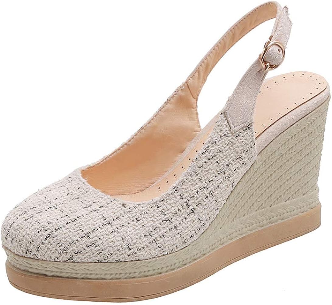 Buckle round toe slingbacks wedge heel clearance, Beige Wedge Heel Buckle Round Toe clearance