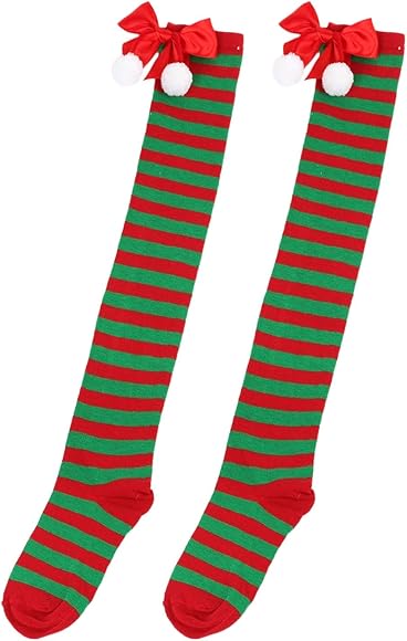 Long stockings christmas clearance, Christmas stockings Christmas Bow Hairball Thigh High Long Stockings Over Knee Socks Christmas Cosplay Party Costumes Socks Knee High Long Striped Stocking Socks Silk Belts for Women 4 Pair : Amazon.co.uk: Fashion clearance