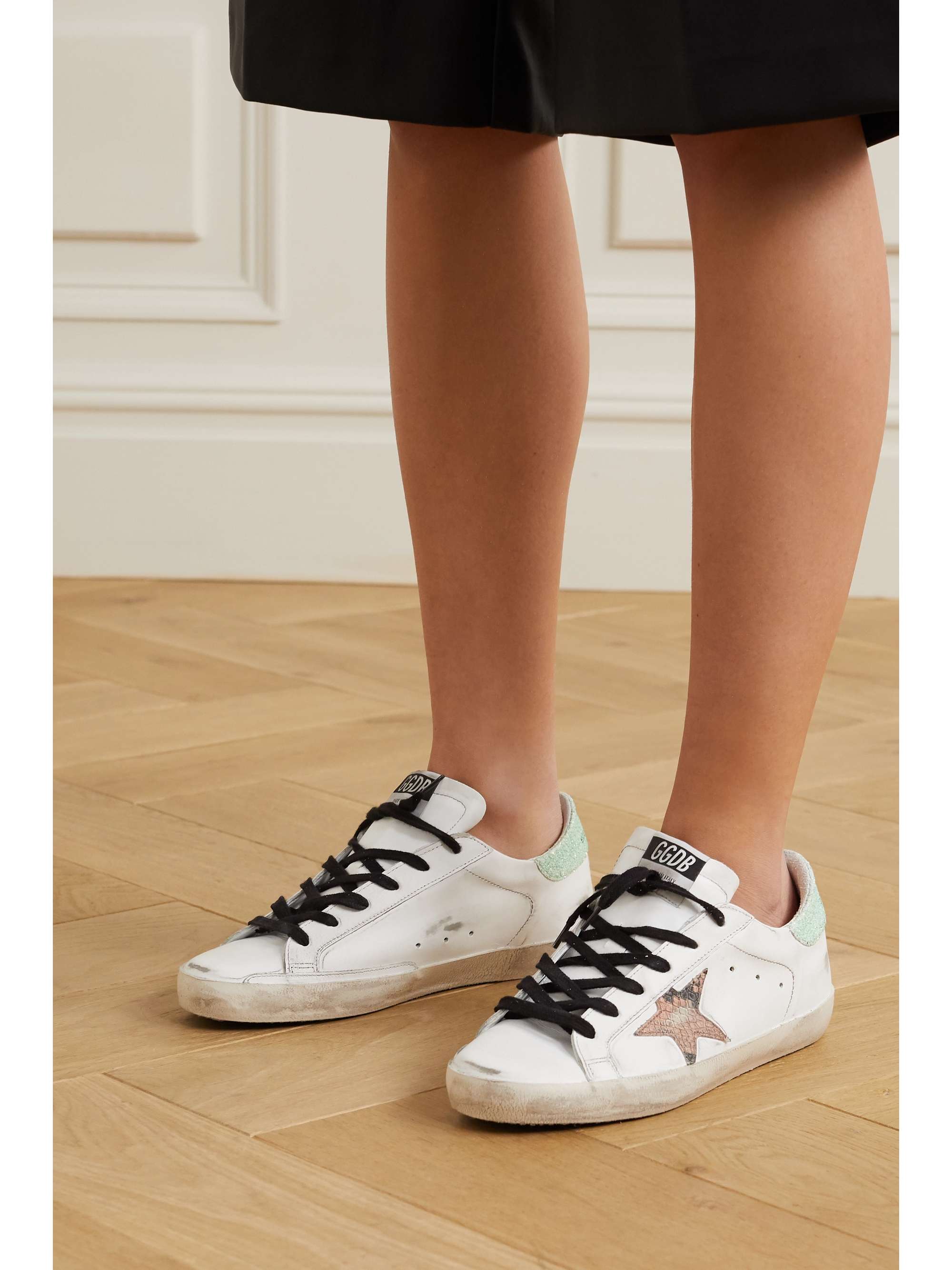 - Golden goose superstar distressed glittered leather sneakers outlet