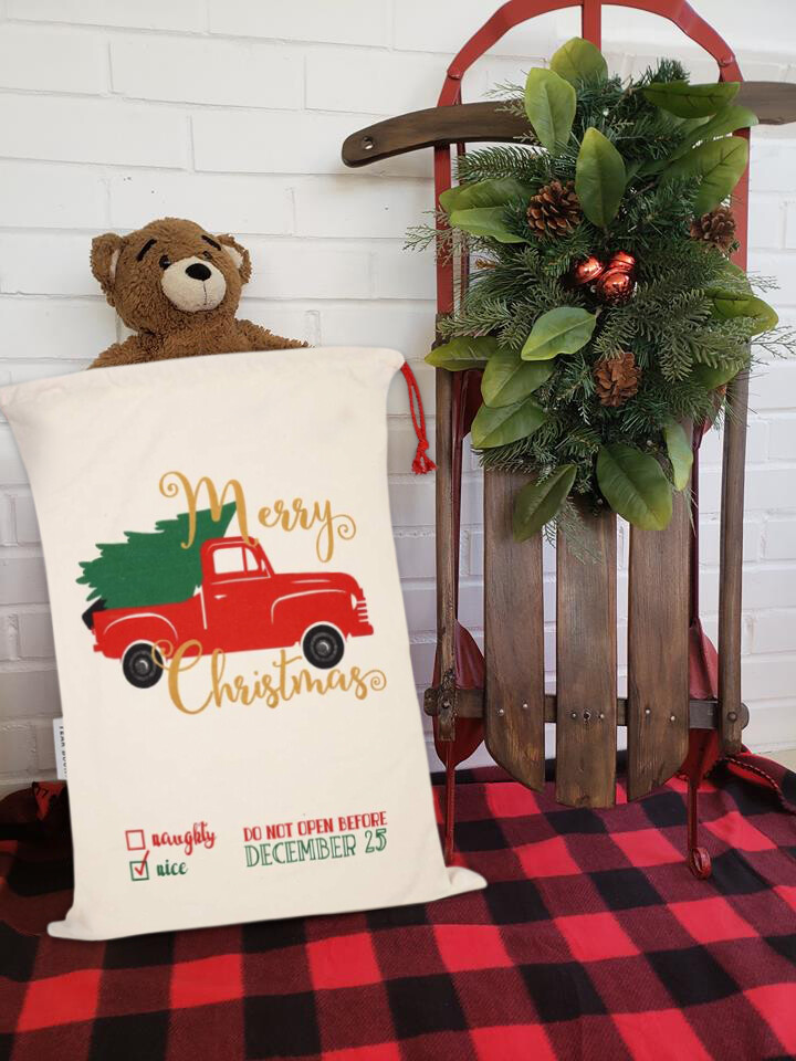 Red truck christmas gift bags clearance, Red Truck u0026 Tree Design Christmas Bag Santa Claus Sack Cotton XMAS Gift Bags NEW | eBay clearance