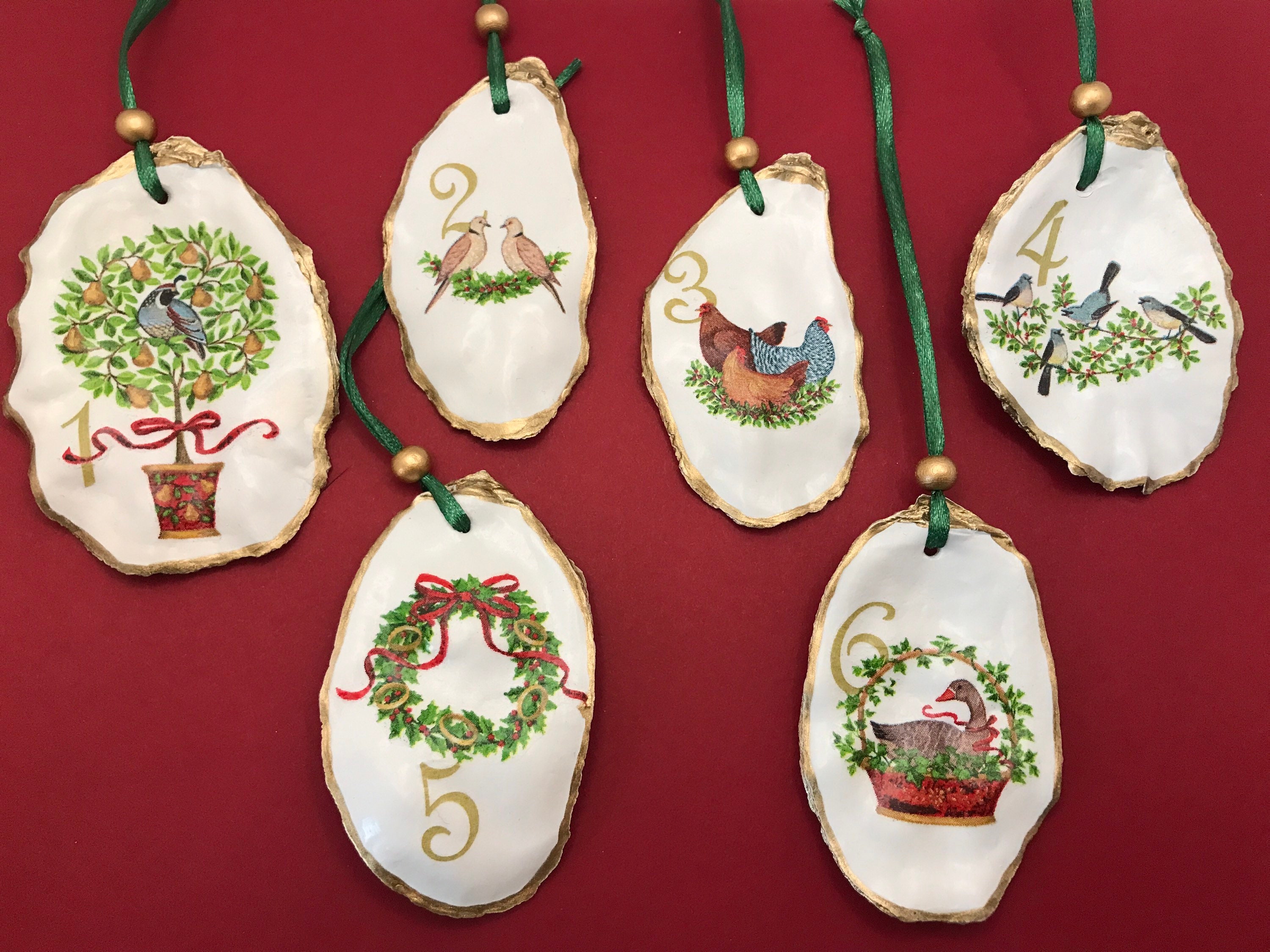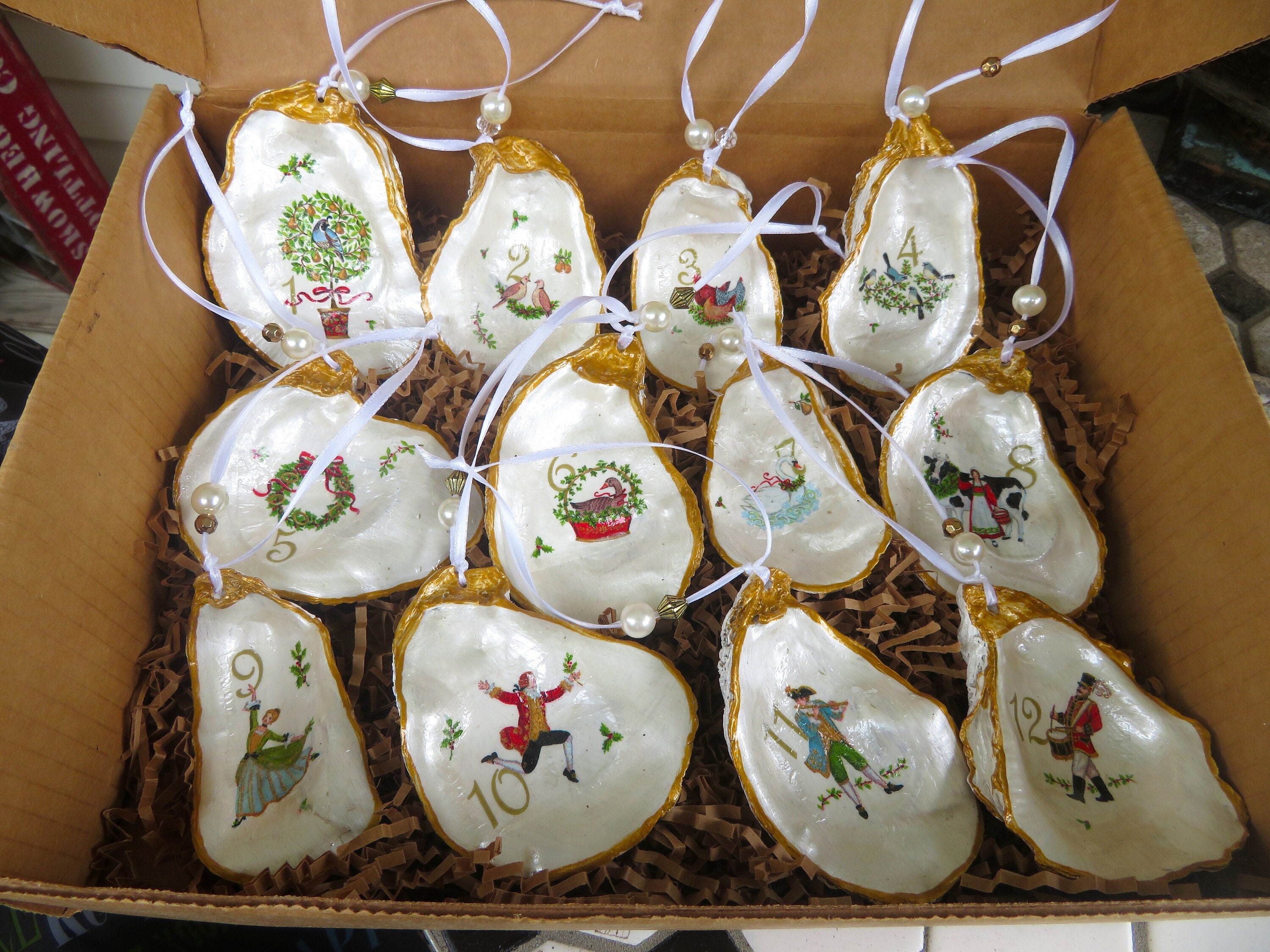 - 12 days of christmas oyster ornaments