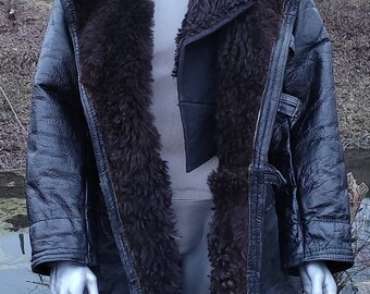 - Russo mens wide collar black leather winter shearling coat sold