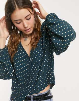 Green spotty blouse clearance, Topshop Green Polka Dot Blouse | Poshmark clearance