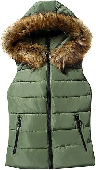 Fur collar puffer vest clearance, BOFETA Women's Down Vest Winter Vest Fur Hood Trim Padding Down Vest Plus Size Army Green S : Amazon.ca: Clothing, Shoes u0026 Accessories clearance